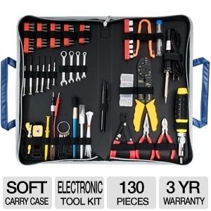 Product DescriptionAmazon.com Product DescriptionThe Ultra 130 Piece Premium Tool Kit is invaluable for anyone that works with computers and is an outstanding value. The tools are demagnetized, durable, and precision-engineered. The tools come in a rugged carrying case making it easy to carry it around anywhere. Included in the kit is an anti-static wrist strap, an electronic tester, hex key bits, star bits, Phillips bits, tri-wing bits, square bits, flat bits, hex key bits, torque bits, ratchet with sockets, side cutter, wrenches, wire cutter/stripper, crimping tool, pozidriver bit, solder iron, solder reel, mini pan flashlight, cable ties, washers, jumpers, screws, and a spare parts box. Product DescriptionWe''ve got the finest quality Ultra computer tool kits available at remarkably low prices. These durable, precision-engineered, demagnetized tools are ideal for routine maintenance, upgrades and general repair. This outstanding selection of superior Ultra tools comes in a handsome, rugged carrying case for easy portability.