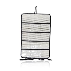 Product Description : Color: Black/Cream Tuxedo StripeCreated by celebrity-fashion-designer Lauren Conrad, this eco-friendly jewelry carrier provides perfect home for your gems and jewels while traveling. Made from 50% post-consumer recycled bottle fabric from REPREVE, the xo(eco) Jewelry Roll, gives new purpose to used plastic bottles. Includes twelve clear pockets to keep a variety of pieces including rings, earrings, bracelets and necklaces in place while traveling. Tie closure allows for expansion when adding more jewels and fabric loop makes it easy to hang once arrived a final destination. Easily washable non-toxic coated exterior fabric makes cleaning easy and convenient. Additional features include: made from 50% post-consumer recycled bottle fabric from REPREVE; BPA Free; 68 denier material with 190 thread count shares a flexible and supple feel of high-end portable bags; includes impact label that features number of bottles upcycled into REPREVE bottle fabric and carbon footprint; and donation of 1% of profits to ocean research and conservation.